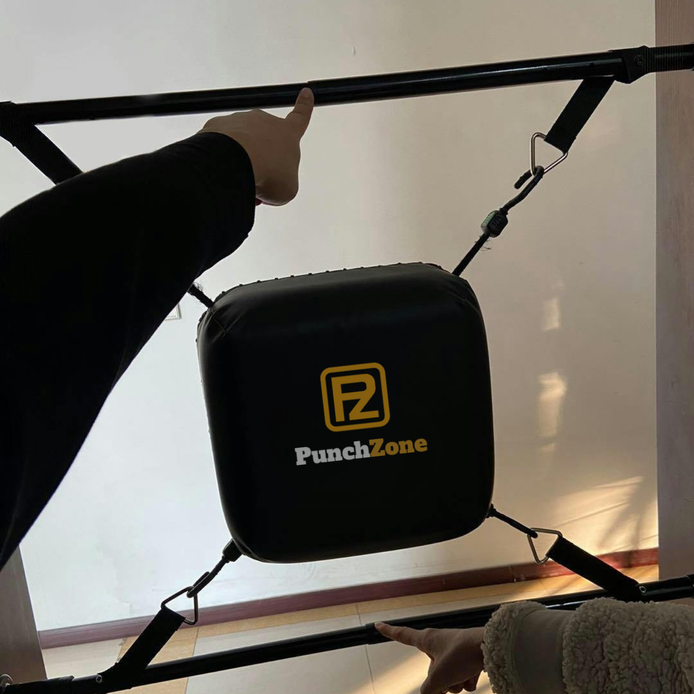Aucune préparation, aucun trajet à la salle. PunchZone est prêt à l’emploi en moins de 60 secondes dans votre cadre de porte.
